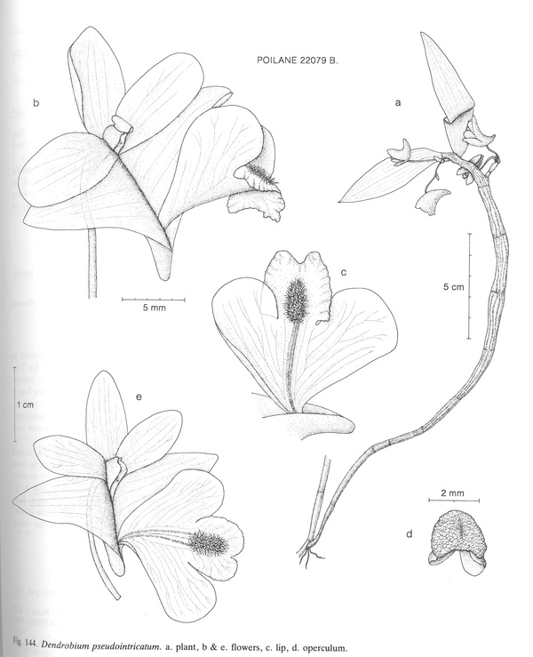 Dendrobium pseudointricatum Guillaumin 1962 SECTION Grastidium Drawing by © Seidenfaden and The Swiss Orchid Foudantion at the Jany Renz Herbaria Website