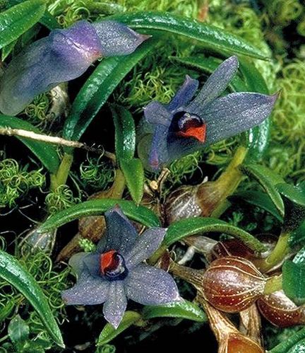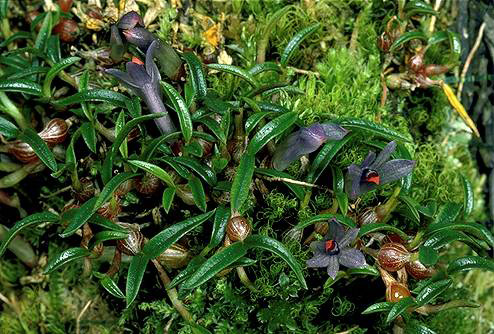 Found in Papua New Guinea in deep shade on tree trunks, cliff faces and on rocks at elevations around 2100 to 3000 meters as a mini-miniature sized, cold growing epiphyte and lithophyte with a creeping rhizome giving rise to minute, cylindrical pseudobulbs carrying 1 to 2, towards the apex, lanceolate, erect-spreading leaves that blooms in the spring on a very short, 1 to rarely 2 flowered inflorescence