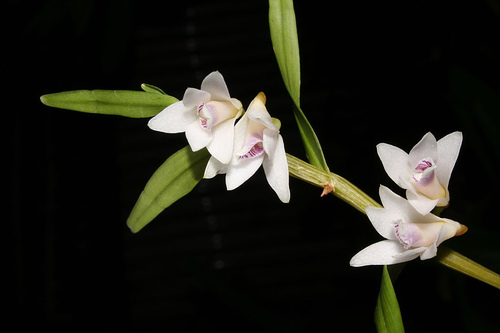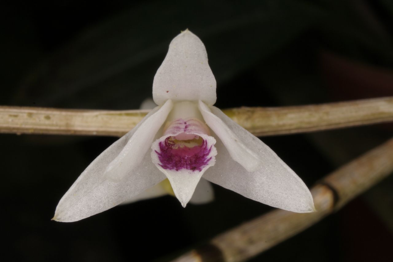Found in Thailand, Malaysia, Vietnam and Sumatra at elevations around 1100 to 1400 meters as a medium sized, cool growing terrestrial with stem-like pseudobulbs carrying many, linear-lanceolate, minutely toothed apically leaves and are leafy towards the apex of the stem and blooms on a short, 1 to 3 flowered inflorescence arising from near the apex of leafless canes. This species requires moist sunny conditions and a decided winter rest