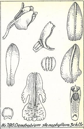 Dendrobium stenophyllum Schltr. 1912 SECTION Grastidium [Bl] J J Sm 1905 Type Drawing by © Schlechter and The Swiss Orchid Foundation at the Jany Renz Herbaria Website