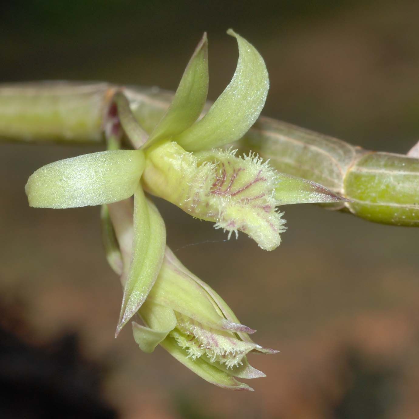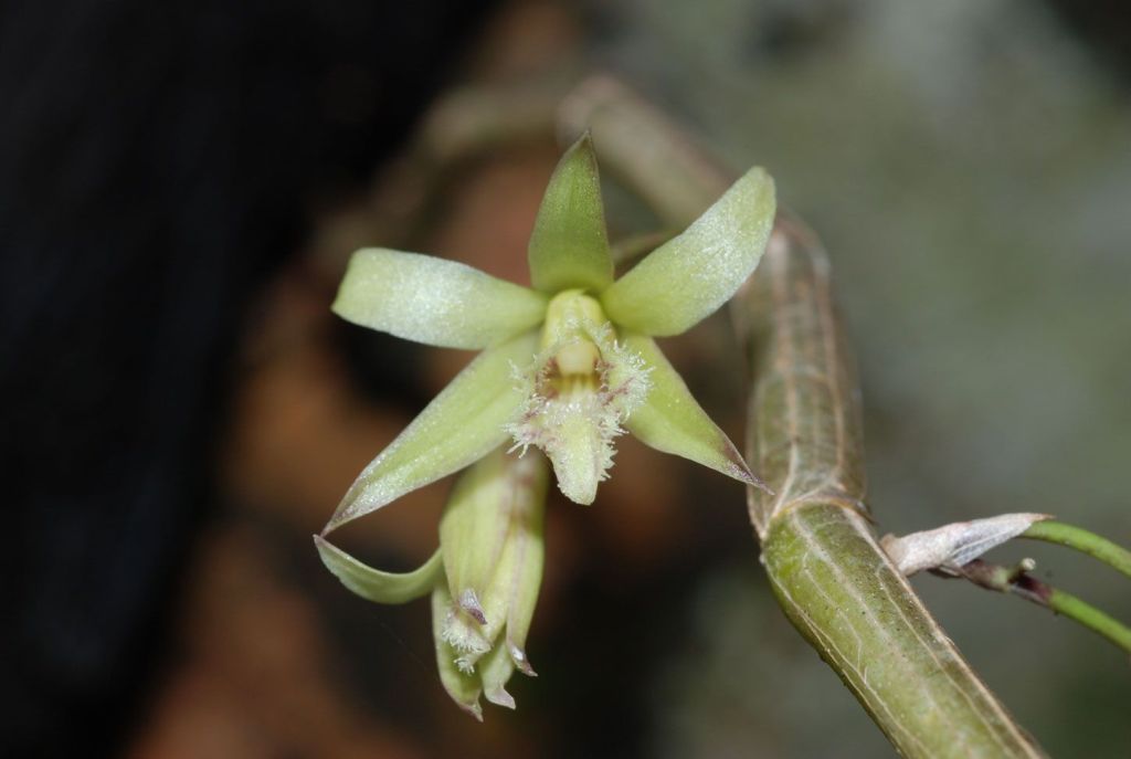Found in Thailand, penninsular Malaysia, Vietnam, Java, Sumatra, Bali, Borneo to Queensland Australia in riverine forests at elevations of 100 to 300 meters as a medium sized, hot growing epiphyte with somewhat fleshy, cane-like stems carrying in youth, deciduous, smaller, acute, thin, 2 ranked leaves that blooms in the spring and summer on a very short, 2 to 3 flowered inflorescence arising from the nodes in the upper 2/3 of the canes with flower that turn yellow with age.