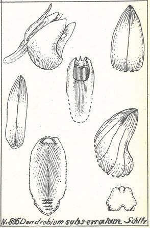 Dendrobium subserratum Schltr. 1912 SECTION Monanthos Schlechter 1905 Type Drawing by © Schlechter and The Swiss Orchid Foundation at the Jany Renz Herbaria Website