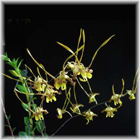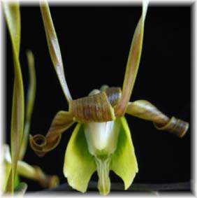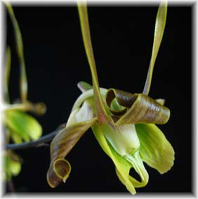 Found in New Guinea and Morotai island in the Moluccas at lower elevations as a large to giant sized, hot to warm growing epiphyte with erect, clustered stems carrying ovate-elliptic, alternate leaves that blooms on lateral, erect to suberect, 14" [35 cm] long, 8 to 12 flowwered inflorescence