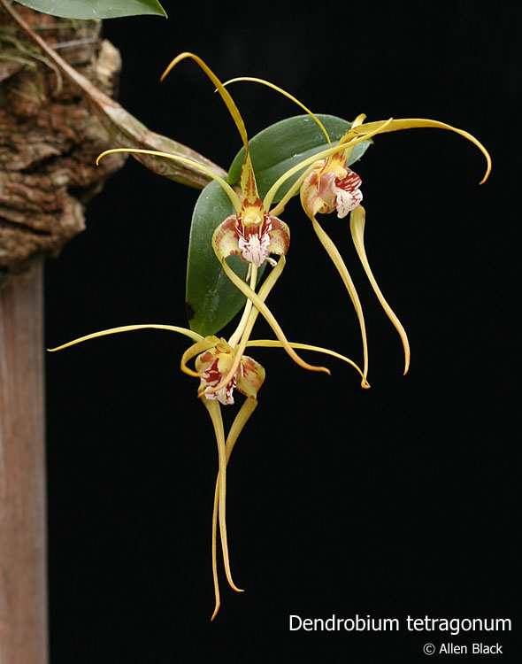 Common Name The Rectangular-Bulbed Dendrobium - In Australia The Blotched Tree Spider Orchid - The Banded Tree Spider Orchid