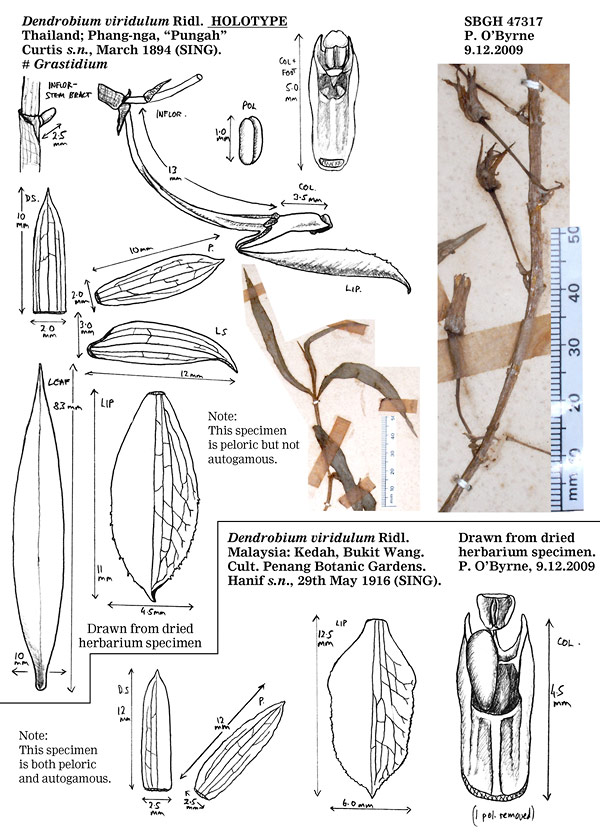 Dendrobium viridulum Ridl. 1896 SECTION Grastidium Photo by © Peter O'Byrne and The Swiss Orchid Foundation at the Jany Renz Herbaria Website