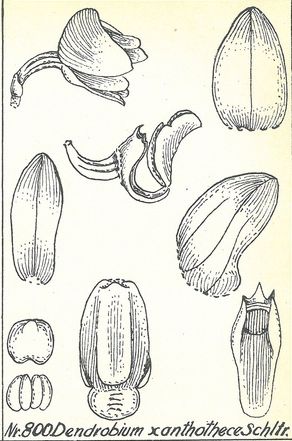 Dendrobium xanthothece Schltr. 1912 SECTION Monanthos Schlechter 1905 Type Drawing by © Schlechter and The Swiss Orchid Foundation at the Jany Renz Herbaria Website