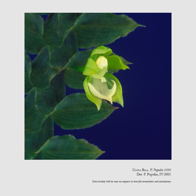 References W3 Tropicos, Kew Monocot list , IPNI ; Lankester's Epidendra Website CR ; *Harvard Pap. Bot. 10: 85. 2005; Vanishing Beauty, Native Costa Rican Orchids Pupulin 2005; AOS Bulletin Vol 76 NO 8 2007 drawing fide; Orquideas de Zamora Chinchipe Tomo 1 Epidendroideae 1 Jimenez y fil 2014 photo fide;