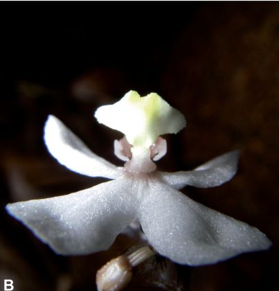 Found in northeastern Madagascar in evergreen montane forest on metamorphic rock at elevations around 985 meters as a miniature sized, warm growing mycoheterotrophic terrestrial with a subterranean elongated blackish tuberous rhizome giving rise to very small, scale like leaves that blooms in the late spring on an erect, beige, brown to blackish, slender, 4" [10 cm] long overall, peduncle provided with a small, ovate, white colored bract, rachis terete, slender, laxly, successivevly single, few flowered inflorescence with ovate, acuminate, much shorter than the ovary floral bracts and carrying tepals that are pink or white.