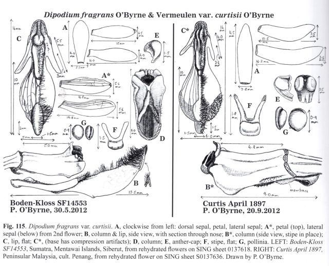 References W3 Tropicos, Kew Monocot list , IPNI ; The Orchids of Penninsular Malaysia and Singapore Seidenfaden & Wood 1992 as D conduplicatum under D pictum pg 555 drawing not; Wild Orchids of Penninsular Malaysia Ong, O'Byrne, Yong & Saw 2011 photo fide; Malesian Orchid Journal Vol 12 O'Byrne 2013 photos fide; Malesian Orchid Journal Vol 12 O'Byrne 2013 as D fragrans var curtisii photos fide; Malesian Orchid Journal Vol 19 2017 photo/drawing fide;