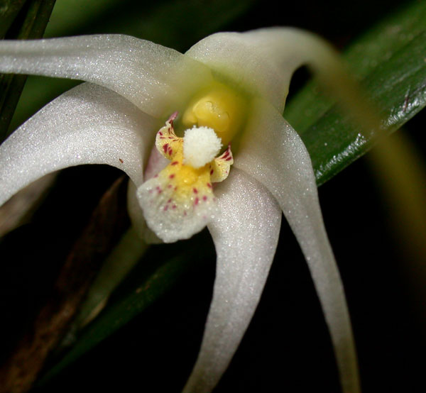 Found in New Guinea as a small sized, hot to warm growing epiphyte with a basally swollen pseudobulb carrying a lanceolate leaf that blooms through a bract at the apex of the pseudobulb