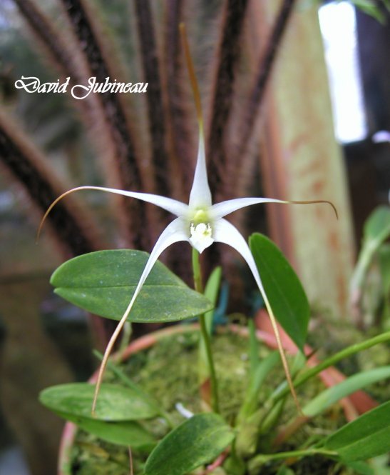 Found in New Guinea in lowland forests as a small to medium sized, hot growing epiphyte with crowded, oblong-ovoid basally, slender apically, subterete pseduobulbs carrying a single, apical, erect, oblong, slightly widening towards the apex, basally conduplicate, apically rounded, narrowly emarginate, rigidly coriaceous leaf that blooms on a terminal, successively several, single flowered inflorescence arising through a conduplicate spathe and with a very short, ring like, shortly acuminate apically floral bract