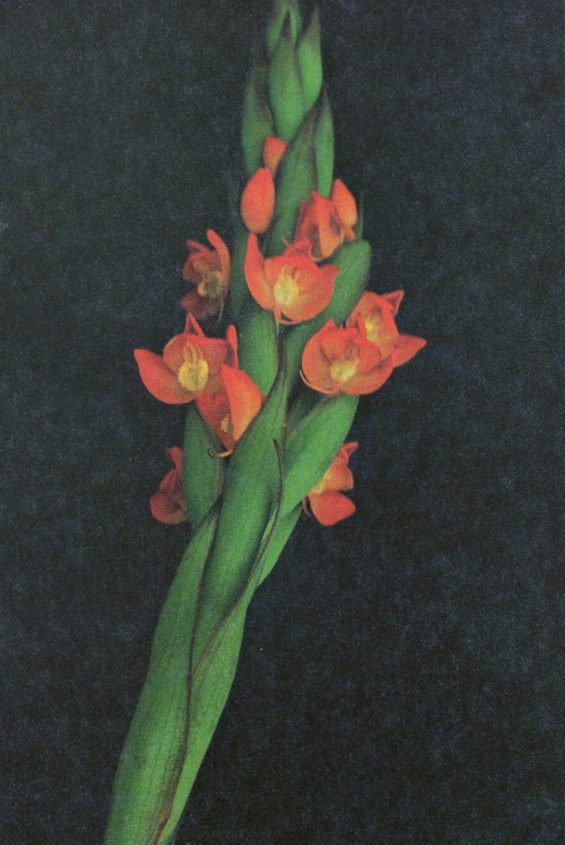 Found in Angola, Malawi, Zambia and Tanzania in wet boggy upland grasslands and open Uapaca woodlands on grassland verge at elevations around 1000 to 1400 meters as a medium sized, cool growing terrestrial with many sheathing leaves that blooms in the late spring and early summer on an erect, fairly lax, to 12 flowered inflorescence.