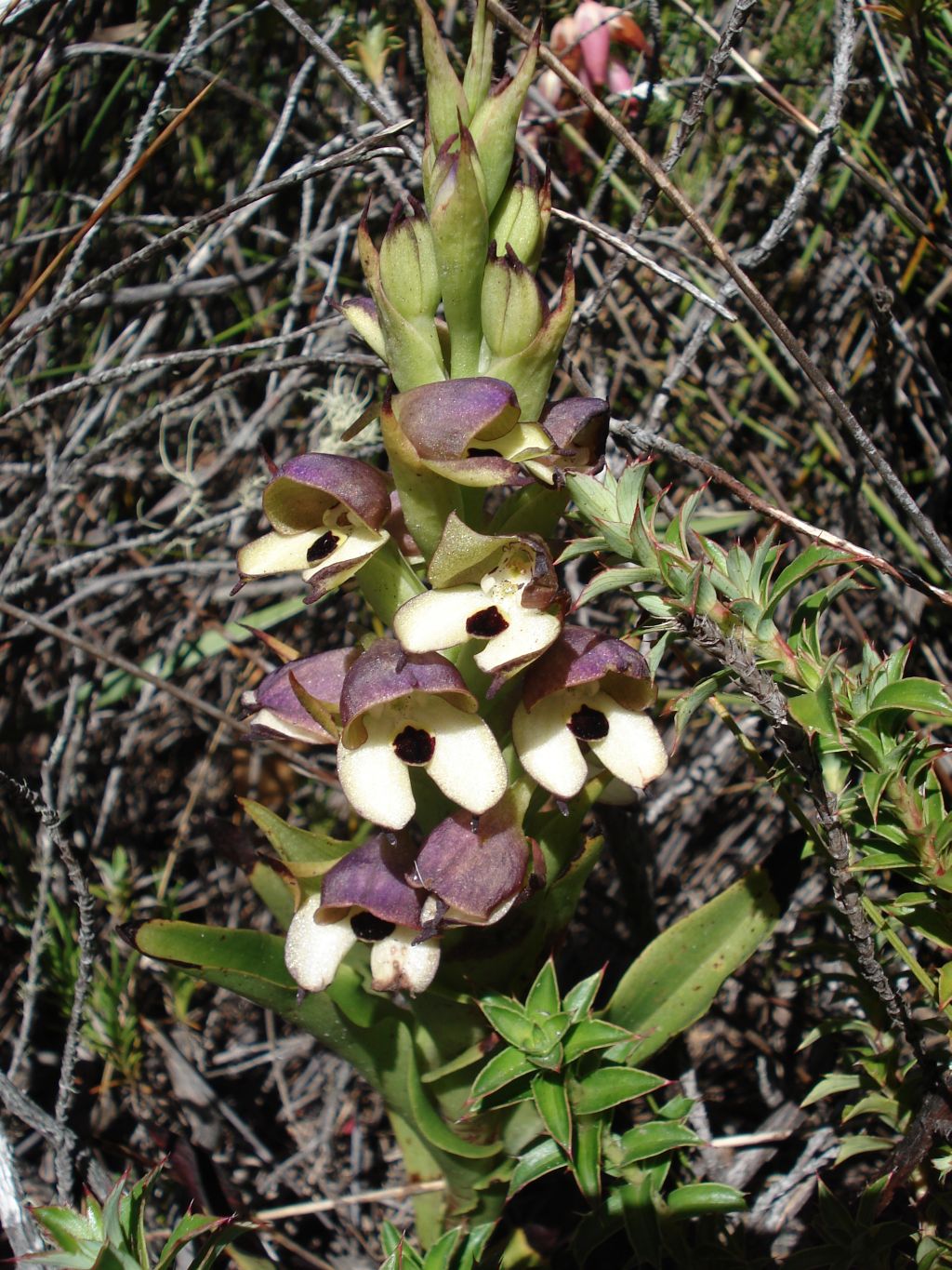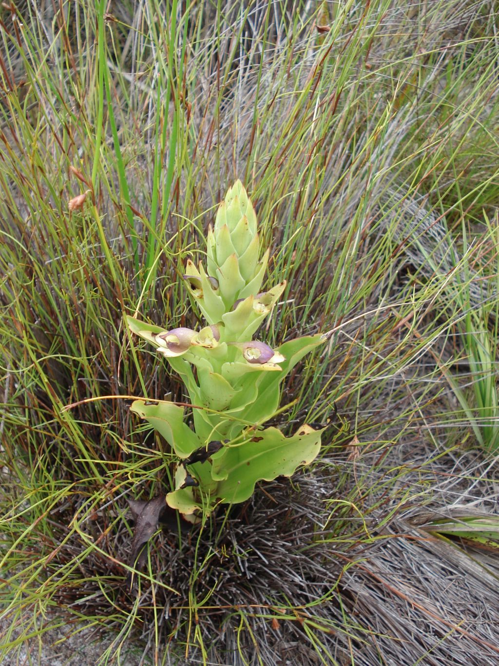 Found in Zimbabwe to Southernmost South Africa in well drained grasslands, on mountains and in sandy flats at elevations of 1800 to 2200 meters in full sun as a robust, medium sized, cold growing terrestrial with densely imbricate, becoming shortly sheathing leaves arising in a crown-shape that blooms in the late spring and early summer on an erect, terminal, imbricate, many flowered inflorescence with bracts longer than the ovaries and overtopping the downward facing flowers