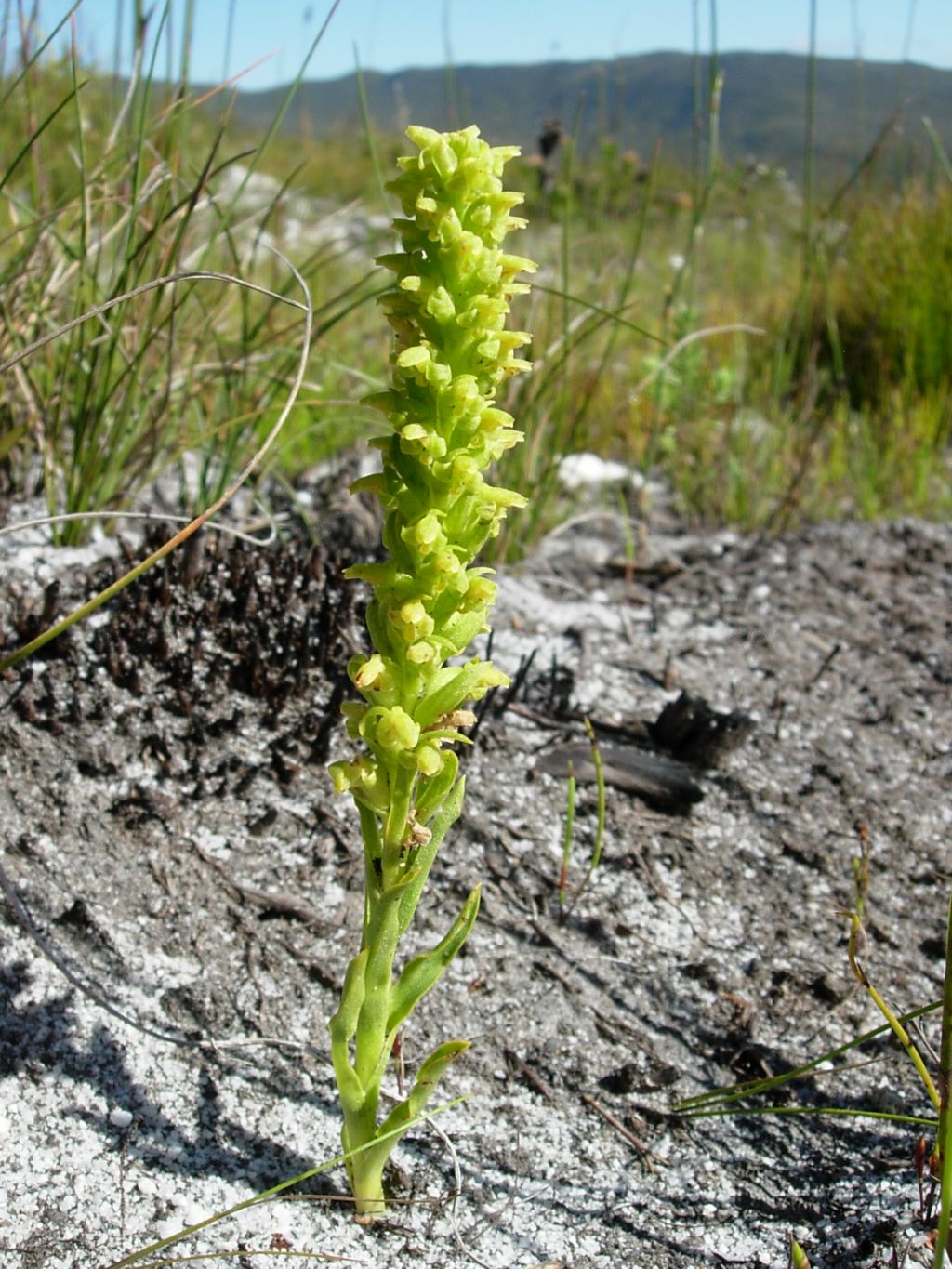 Found in southernmost South Africa in damp, swampy areas in fynbos at eleavtions of near sea level to 1200 meters as a small to medium sized, cold growing terrestrial with an erect, short stem with 2 basal, hyaline, obtuse sheaths completely enveloped by cauline, lorate, erect, basally clasping leaves grading into bracts towards the terminal, cylindrical, many flowered inflorescence with bracts as long as the fragrant flowers which arise in th spring and early summer.