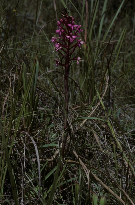 Found in Burundi, Rwanda, Uganda, Tanzania and Zambia in wet swamp forests at elevations of 1100 to 2100 meters as a slender, erect, medium sized, cool to cold growing terrestrial with imbricate, semi-erect, conduplicate, linear, acute, becoming narrowly ovate to lanceolate then grading into the floral bracts that blooms in the late spring on an erect, terminal, 3.2 to 6" [8 to 15 cm] long, laxly 15 to 30 flowered inflorescence with floral bracts that are shorter than the ovaries.