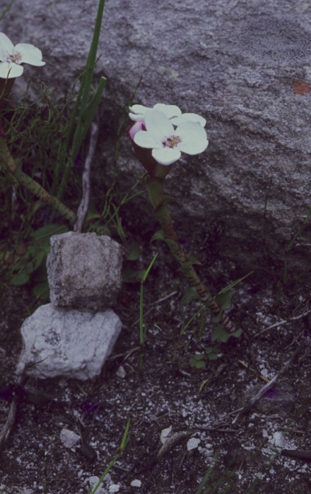 Found in SW & S Cape Province South Africa in sandy areas in mountains at elevations of sealevel to 1000 meters as a small sized, cool growing terrestrial with cauline, mostly sheathing, purple basrred at base leaves that blooms in the spring on an erect, to 10" [to 25 cm] long, corymbose, 1 to 4 flowered inflorescence