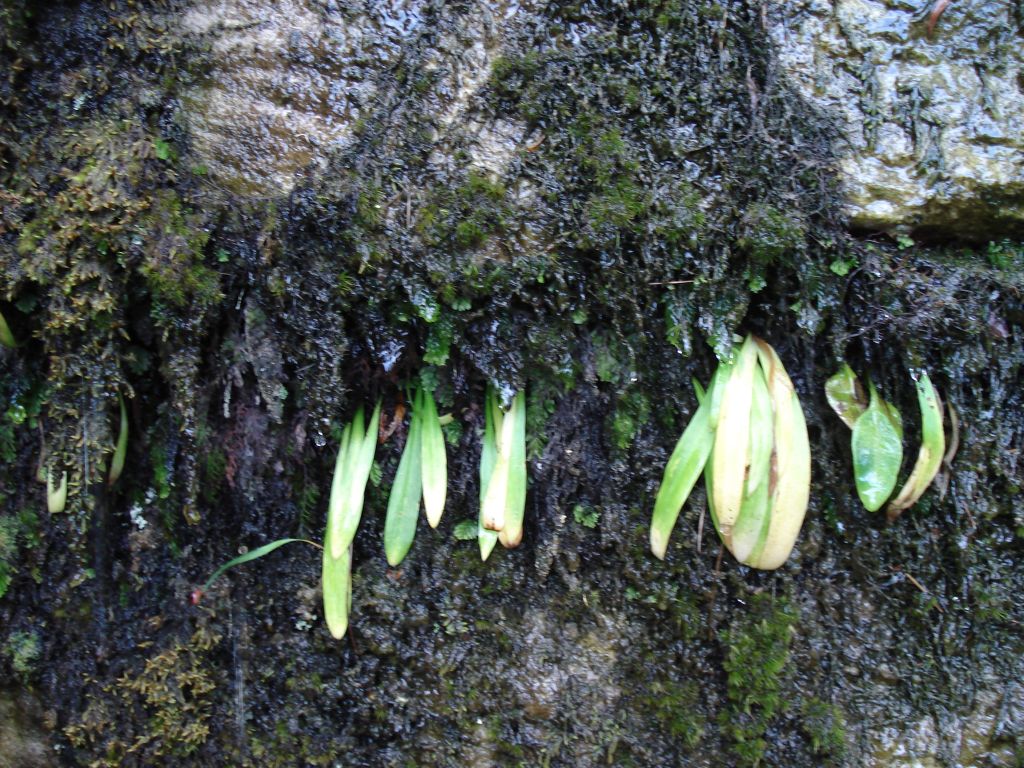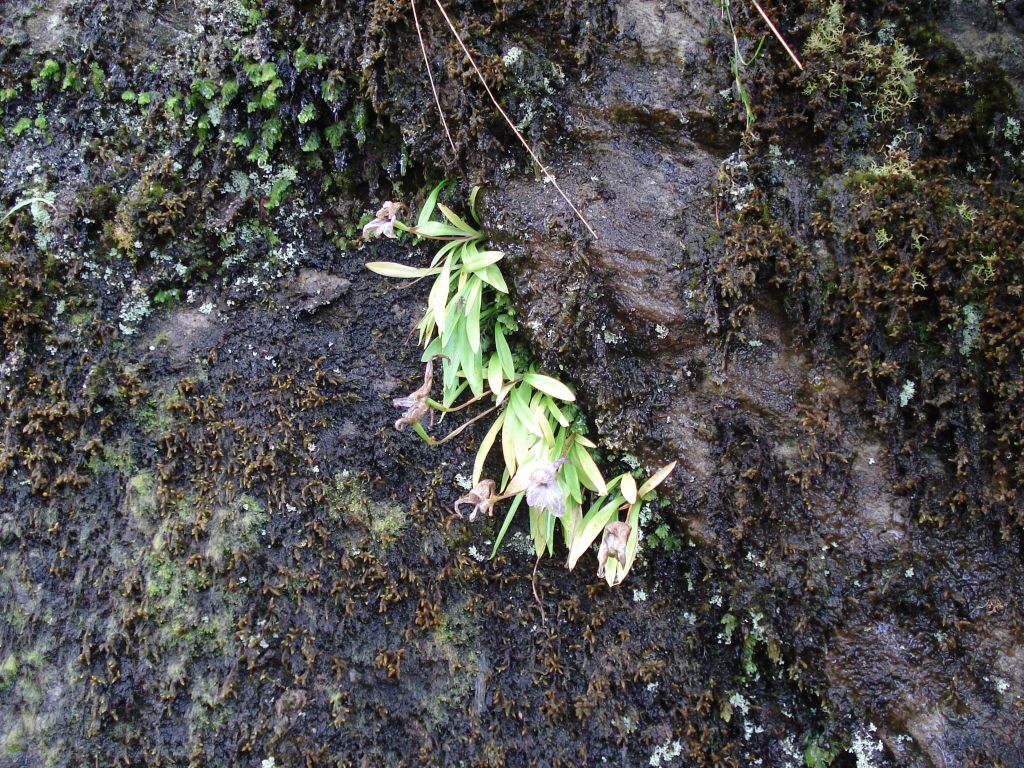 Found in southwest South Africa on rock faces at elevations of 600 to 1000 meters as a miniature to small sized, cold growing lithophyte with usually 4 basal, narrowly elliptic, petiolate, lax to imbricate leaves that blooms in the late spring and early summer on an erect, single flowered inflorescence with bracts as long as the ovary and carrying a reupinate flower.