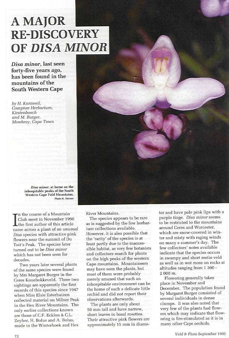Disa minor (Sond.) Rchb.f. 1865 SECTION Disa Photo by © K. Steiner - The Veld & Flora and The Botanical Society of South Africa Website