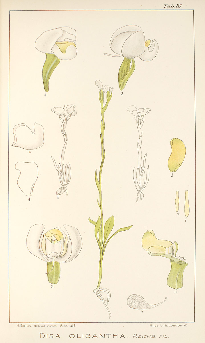 Disa oligantha Rchb.f. 1865 SECTION Disa Drawing by © Bolus and The Swiss Orchid Foundation at the Jany Renz Herbaria Website