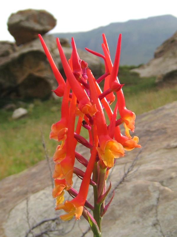 Found in Cape Province, Lesotho and Orange Free State in grasslands in full sun at elevations of 1000 to 2000 meters as a small to medium sized, cool to cold growing terrestrial with radical, hysteranthous, linear leaves that blooms in the summer on a cylindrical, 8 to 24" [20 to 60 cm] long, several to numerous flowered inflorescence carrying spicily fragrant flowers