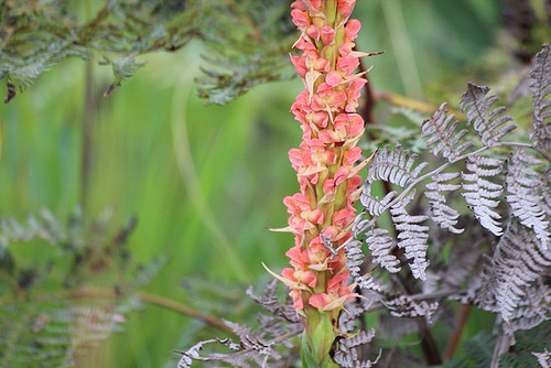 Found in Burundi, Tanzania, Malawi and Zambia in montane grasslands at elevtions of 1800 to 2500 meters as a medium to large sized, cold growing terrestrial with steril, slender to robust, carrying 2 to 3, narrowly elliptic, acute, erect, conduplicate leaves and the fertile stem carrying imbricate, the basal 1 to 3, small, completely sheathing, rounded to obtuse, the other 4 to 8, ovate to narrowly ovate, acute leaves that blooms in the summer on a terminal, erect, 4 to 12" [10 to 30 cm] long, densely to 150 flowered inflorescence with lanceolate, acuminate, reflexed apically floral bracts