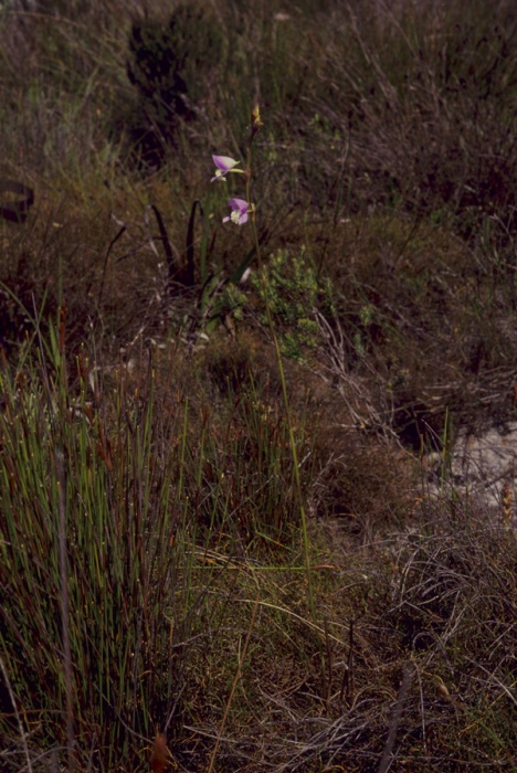 Found in southwestern and eastern Cape Province South Africa in damp areas in full sun at elevations of sea-level to 1000 meters as a medium sized, cool to cold growing terrestrial that blooms in the summer on an erect, terminal, to 24" [to 60 cm] long, laxly 12 flowered inflorescence.