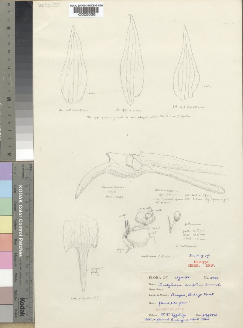 Collection sheet by © Summerhayes and The Kew Royal Botanical Garden Website