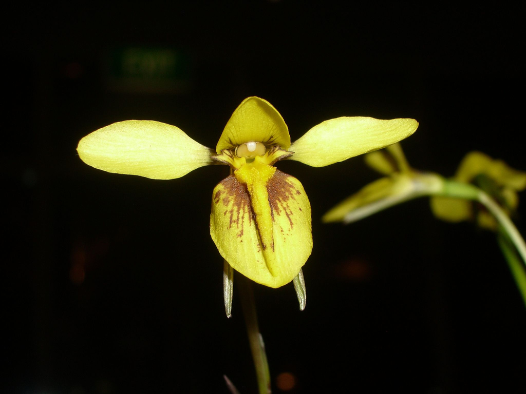 Found in Victoria and New South Wales, Australia in Callistris woodlands as a small sized, cold growing terrestrial with 4 to 7, linear leaves in a looose, erect tussock that blooms in the later winter and early spring on an erect, 6 to 12" [15 to 30 cm] long, 1 to 4 flowered inflorescence carrying semi erect to porrect flowers