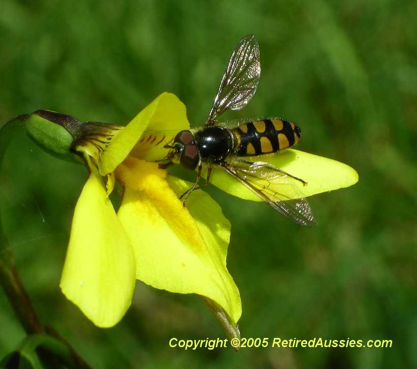 The Common Hover Fly - Melangyna viridiceps, is visible in the first photo and has its telescopic "mouth" organ extended ready to pollinate.