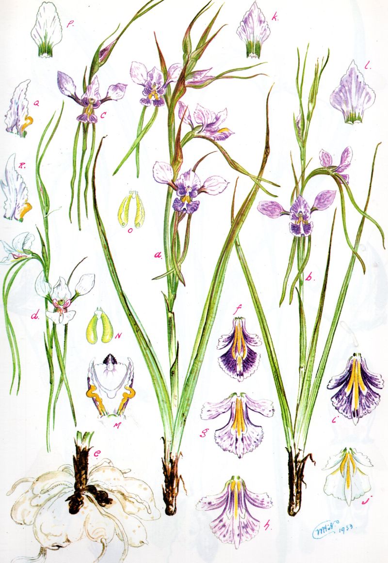 References W3 Tropicos, Kew Monocot list , IPNI ; Atlas des Orchidees Cultivees Constantin 1920 drawing ok; AOS Bulletin Vol 27 No 8 1958 photo fide; AOS Bulletin Vol 35 No 4 1966 photo fide; Orchids of Australia Nicholls 1969 drawing as D puncta var alboviolacea fide; AOS Bulletin Vol 39 No 10 1970; Die Orchideen 3 Auflage Bd 1 Sonderabdruck aus Schlechter Lieferung 6 321 - 384 Brieger, Maatsch and Senghas 1975 drawing/photo OK; The Manual Of Cultivated Orchid Species Bechtel, Cribb & Laurent 1992 drawing fide; Australian Orchid Review Vol 67 No 1 2002 photo; Australian Orchid Review Vol 70 No 5 2005; Native Orchids of Australia Jones 2006 photo fide; Native Orchids of Australia Jones 2006 as D punctata var sulfurea photo; AOS Bulletin Vol 85 #3 2016 as H macroceras drawing fide;