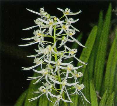 Best mounted on cork to accomodate it's rambling growth habit. This orchid has a creeping, branched stem carrying stiffly erect, nearly terete, hard, dull green, longitudinally furrowed 5 times pseuobulbs that blooms in the spring, summer and fall on an erect, 4 to 8" [10 to 20 cm] long, 10 to 60 flowered inflorescence carrying densely crowded flowers.