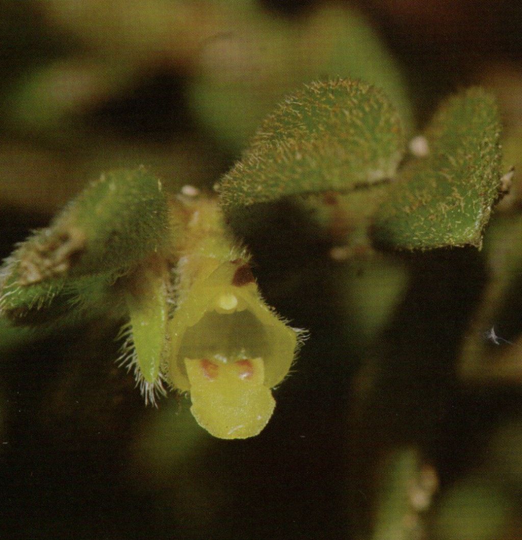 Found in Hainan province of China in tropical, montane evergreen forests at elevations of 1350 to 1450 meters as a miniature sized cool growing epiphyte with a creeping, branching rhizome with .4" [1 cm] between each stem carrying 5 to 7 rather small, fleshy, oblong to lanceolate, acuminate, white hairy both sides leaves that blooms in the fall on an erect, lateral, peduncle .16" [4 mm] long, single flowered inflorescence carrying a yellowish green flowers with coarsely hairy exterior to the sepals.