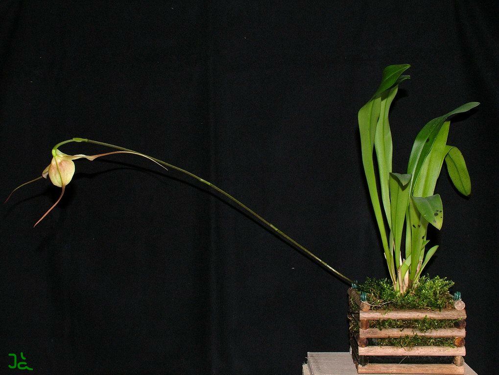 Found in Valle de Cauca department of Colombia and Ecuador in virgin cloud forests at elevations of 1700 to 2600 meters as a medium sized, cool to cold growing epiphyte with erect, stout ramicauls enveloped basally by 2 to 3, loose, tubular sheaths and carrying a single, apical, erect, thinly coriaceous, carinate, narrowly elliptical, acute, gradually narrowing below into the conduplicate, indistinct, petiolate base leaf that blooms in the spring, summer and fall on a purple, stout, erect sometimes horizontal, 2' [60 cm] long, successively few flowered, racemose inflorescence arising from low on the ramicaul with tubular floral bracts and produces large, single flowers in procession.