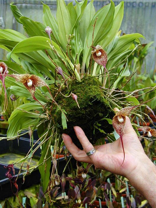 This plant should be grown in a wood slat or wire basket as the inflorescence poke down and out the sides of the plant and may be hindered by the inside wall of a pot.
