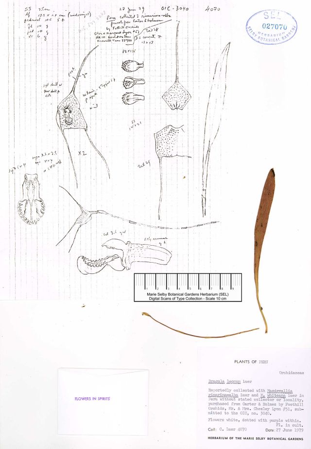 Dracula leonum Luer 1979 SUBGENUS Dracula SECTION Dracula SUBSECTION Dracula SERIES Parviflorae