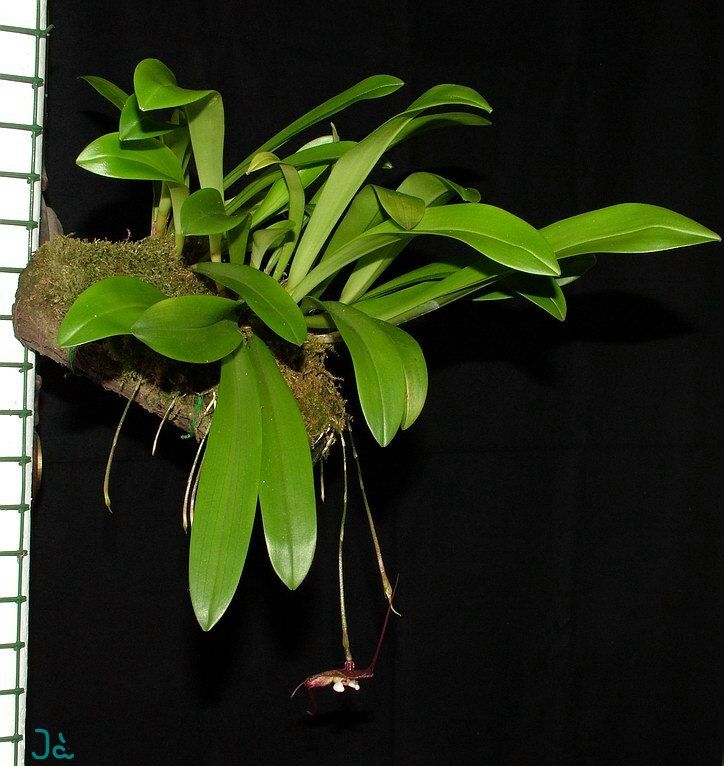 Found Colombia and Ecuador in dense cloud forests at elevations of 1700 to 2000 meters as a fragrant, small sized, cool growing, caespitose epiphytic species with coarse roots and a short leafy stem enveloped by loose basal sheaths and carrying a single, erect, thin coriaceous, elliptic-oblanceolate, acute to obtuse, petiolate base leaf blooms in the winter through spring on a pendulous, short to 7" [17.5 cm] raceme that arises from the base of the pseudobulb and carries a single, nodding flower.