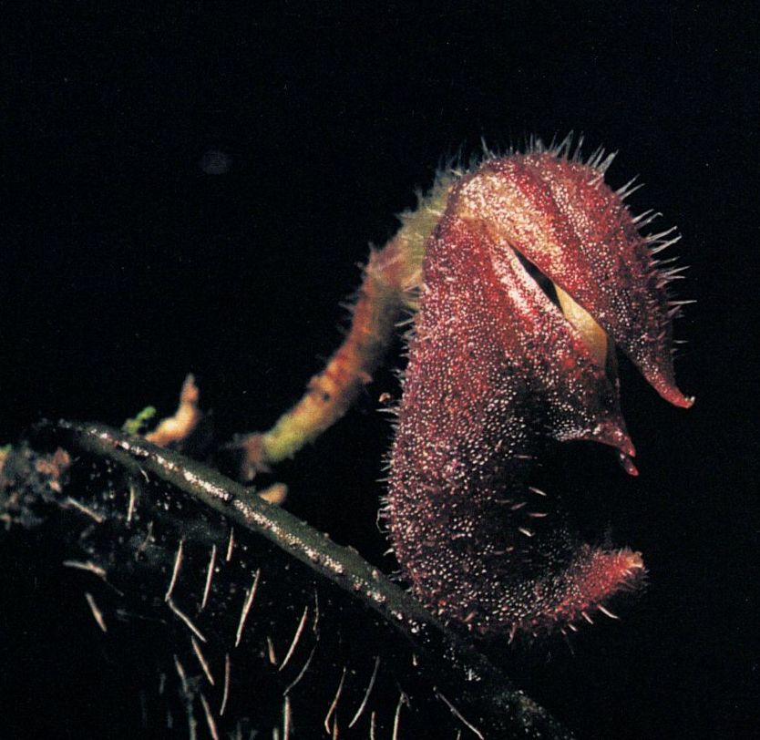 EARLYFound in Guatemala at unspecified elevations as a mini-miniature sized, warm to cool growing epiphyte with slender, prostrate ramicauls enveloped by 3 loose, tubular sheaths and carrying a single, apical, horizontal, coriaceous, long-pubescent, ovate, acute, sessile base leaf that blooms in the late summer and early fall on an ascending, .08" [2 mm] long, successively single, few flowered inflorescence with tubular, pubescent floral bracts.
