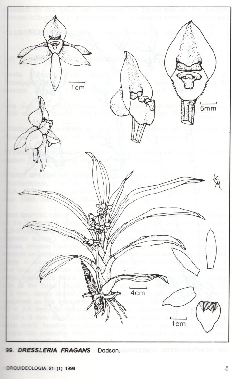 References W3 Tropicos, Kew Monocot list , IPNI ; Icones Plantarum Tropicarum Pl 55 Dodson 1980 drawing fide; *Orquideologia Vol. 21 No 1 Dodson 1998 drawing fide; Rudolf Schlechter Die Orchideen Band 1C lieferung 44-45 pg 2763 - 2898 Brieger 2001; Flora of Ecuador No 87 225[3] Orchidaceae Dodson & Luer 2010 drawing fide/photo good; *Hills, H.G. 2012. Taxonomic revision of Dressleria (Orchidaceae, Catasetinae). Phytoneuron 2012-48: 1–28. Published 23 May 2012. ISSN 2153 733X photo fide