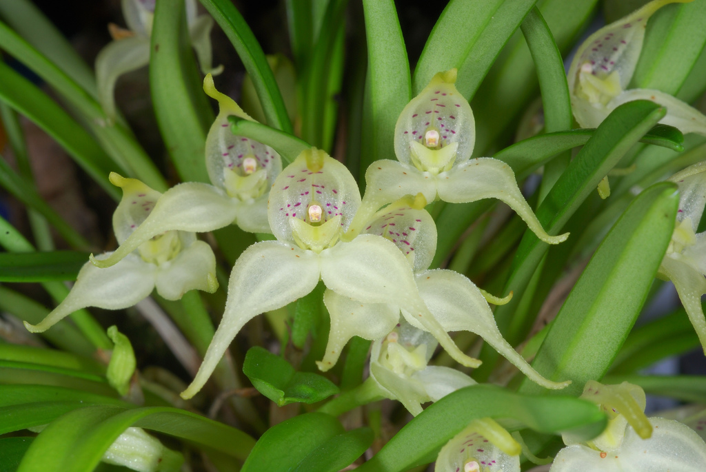 Found from Costa Rica, Panama, Colombia and Ecuador as a mini-miniature sized, warm to cold growing epiphyte that occurs at elevations of 400 to 2400 meters with erect ramicauls enveloped basally by 2 to 3 thin, tubular sheaths and carrying a single, apical, erect, narrowly linear to semiterete, acute, gradually narrowing below into the base leaf that blooms in the summer on an erect, 1 1/5" [3 cm] long, single flowered inflorescence that holds the flower at mid-leaf.