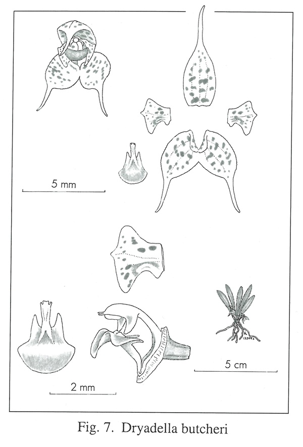 Characterizedby the very small habit, small spotted flowers with caudate sepals, plabellate petals and the incinate-winged column. The columnar processes are similar to those of the much larger D butcheri of Ecuador." Luer 1999