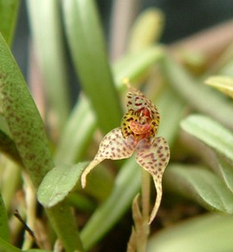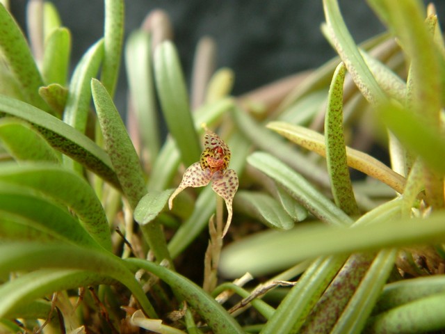 Found in Mexico, Belize, Guatemala, Nicaragua, Costa Rica and Panama in dense tropical forests at elevations up to 650 meters as a mini-minature sized, hot to warm growing epiphyte with erect, short ramicauls carrying a single, apical, linear to linear-oblanceolate, obtuse and obliquely tridenticulate apically, coriaceous leaf that blooms in the summer on a short, single flowered inflorescence subtended by several scarious, apiculate bracts.
