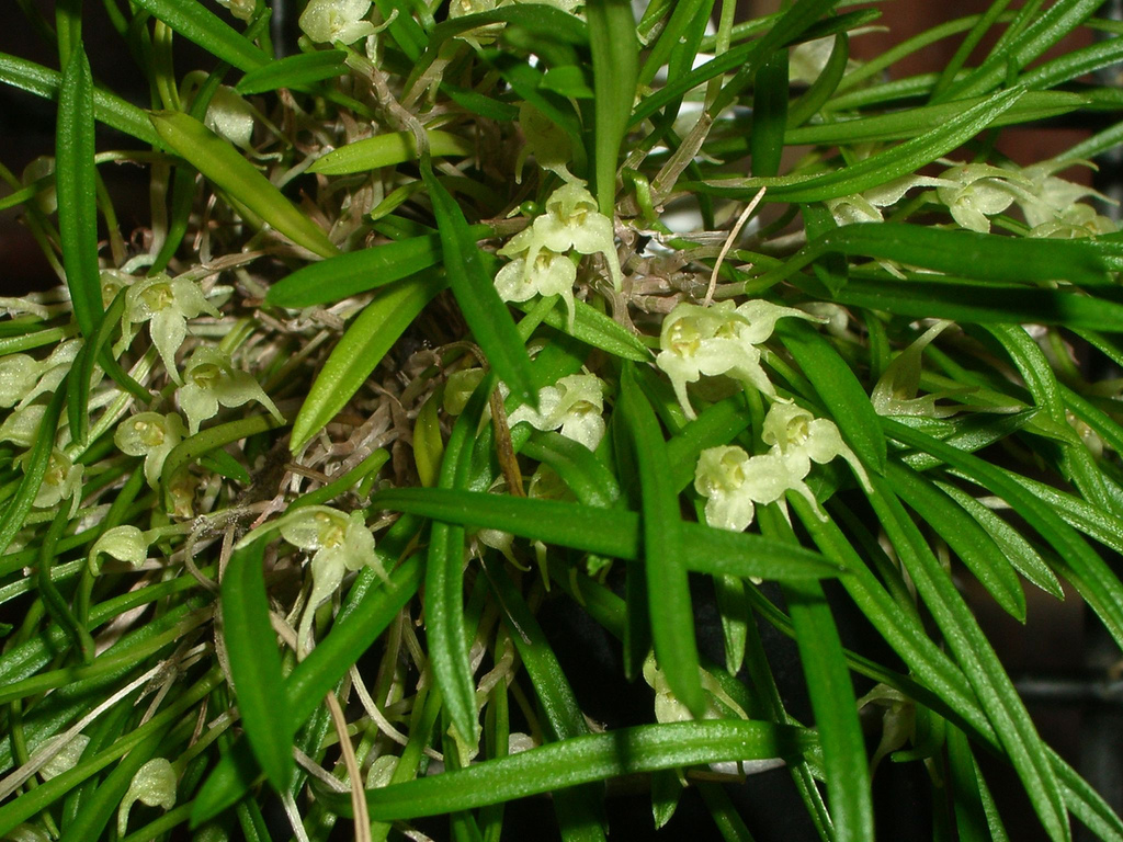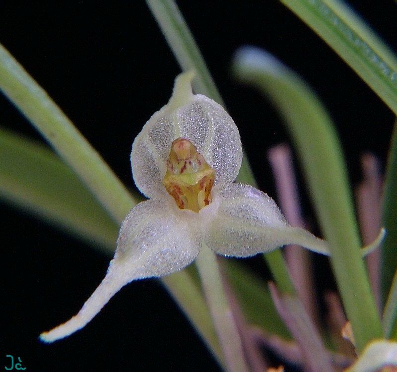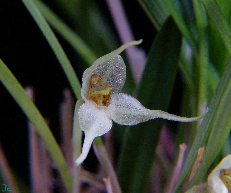 Found in Colombia and Ecuador in montane forests at elevations of 2000 to 2600 meters as a mini-miniature sized, cold growing epiphyte with thick roots and erect ramicauls enveloped basally by 2 to 3 thin tubular sheaths and carrying a single, apical, narrowly linear-elliptical to semi-terete, subacute leaf and blooms in the spring and summer on a loose, slender, erect, 1/5 to 2/5", successively few flowered inflorescence arising from low on the ramicaul and having thin, deciduous floral bracts