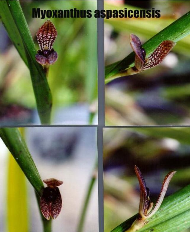 References W3 Tropicos, Kew Monocot list , IPNI ; Bonplandia Rchb.f 1855 as Pleurothallis aspacensis; Icones Pleurothallidinarum Vol III Luer 1986 as Pleurothallis aspasicensis; Icones Pleurothallidinarum Vol IX Systematics of Myoxanthus Luer 1992 as Myoxanthus aspasciensis drawing fide ; Icones Pleurothallidinarum Vol XII as Pleurothallis aspasciensis; Orchids of Bolivia Vol 1 Pleurothallidinae Vasquez & Ibisch 2000 as Pleurothallis aspacensis drawing good; Lindleyana Vol 16 No 4 2001 as Echinella aspacensis; Native Ecuadorian Orchids Vol 4 Dodson 2003 as Pleurothallis aspacensis photo fide; Flora of the Venezuelan Guayana Vol 7 Steyermark, Berry, Yatskievych and Holst 2003 as Pleurothallis aspacensis; Manual de Plantas de Costa Rica Vol 3 Hammel, Grayum, Herrera and Zamora 2003 as Pleurothallis aspacensis; Icones Pleurothallidinarum Vol XXVI Luer 2004 as Brenesia aspacensis; Vanishing Beauty, Native Costa Rican Orchids Vol 1 Pupulin 2005 photo fide; Orchids of Costa Rica Vol 5 Morales 2009 as Pleurothallis aspasicensis photo ok; LANKESTERIANA 17(2): Pupulin 2017 photo fide;