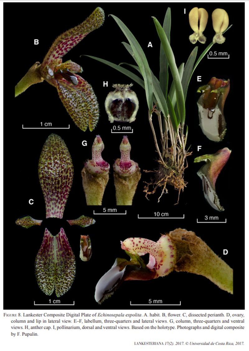 References W3 Tropicos, Kew Monocot list , IPNI ; * TWO NEW SPECIES OF ECHINOSEPALA (ORCHIDACEAE: PLEUROTHALLIDINAE)Pupulin, Karremans and Ocontirillo 2017 photo/drawing fide Pleurothallids Neotropical Jewels Vol 1 Karremans & Viera 2020 as photo fide
