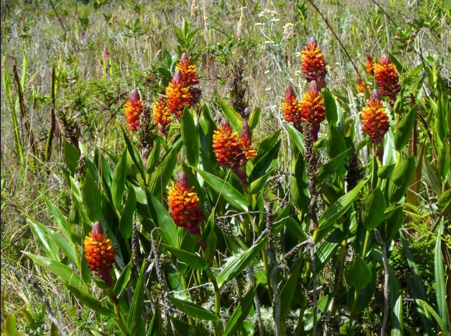 Found in Colombia, Ecuador and Peru at elevations around 1400 to 2800 to 3300 meters as a small to large sized, cold growing terrestrial with compressed, lenticular in cross-section, vaginate below leafy above stems carrying rather densely many, subcoriaceous, ovate-lanceolate, to lanceolate-elliptic, acuminate, sessile, basally clasping leaves that blooms on a terminal, sessile, cylindric, slightly arcuate, densely many flowered inflorescence with reddish purple, ovate-cymbiform, acute to subobtuse bracts.