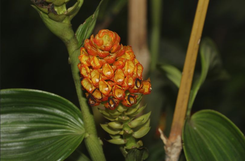 Found in Nicaragua, Colombia, Ecuador and Peru at elevations of 500 to 1650 meters as a medium sized, warm to cool growing terrestrial with stout, thick, leafy above stems carrying thin, plicate, purplish underneath, elliptic, shortly acuminate leaves that blooms on a terminal, erect, 3.2" [8 cm] long, spicate, densely many flowered, racemose inflorescence with ovate-lanceolate, acute to acuminate, striate, decreasing in size upwards floral bracts.