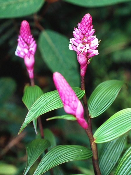 Found in Mexico, south to Panama, Colombia, Venezuela, Ecuador and Peru as a large to giant sized, warm to cold growing terrestrial occuring in wet montane forests at 660 to 3130 meters with an erect, cane-like, simple, stout stem with many rather thin, size variable, lanceolate, long-acuminate, very large, plicate, acuminate, sessile leaves on rather loose fitting prominently ribbed, glabrous sheaths that blooms in the spring on a very compact, cylindric, to 7 1/4" [18 cm] long, densely many flowered inflorescence that arises from 2 to 3 large, imbricating, erect sheaths with rather thin, spreading, oblong-lanceolate, acute, floral bracts that are shorter than the flowers
