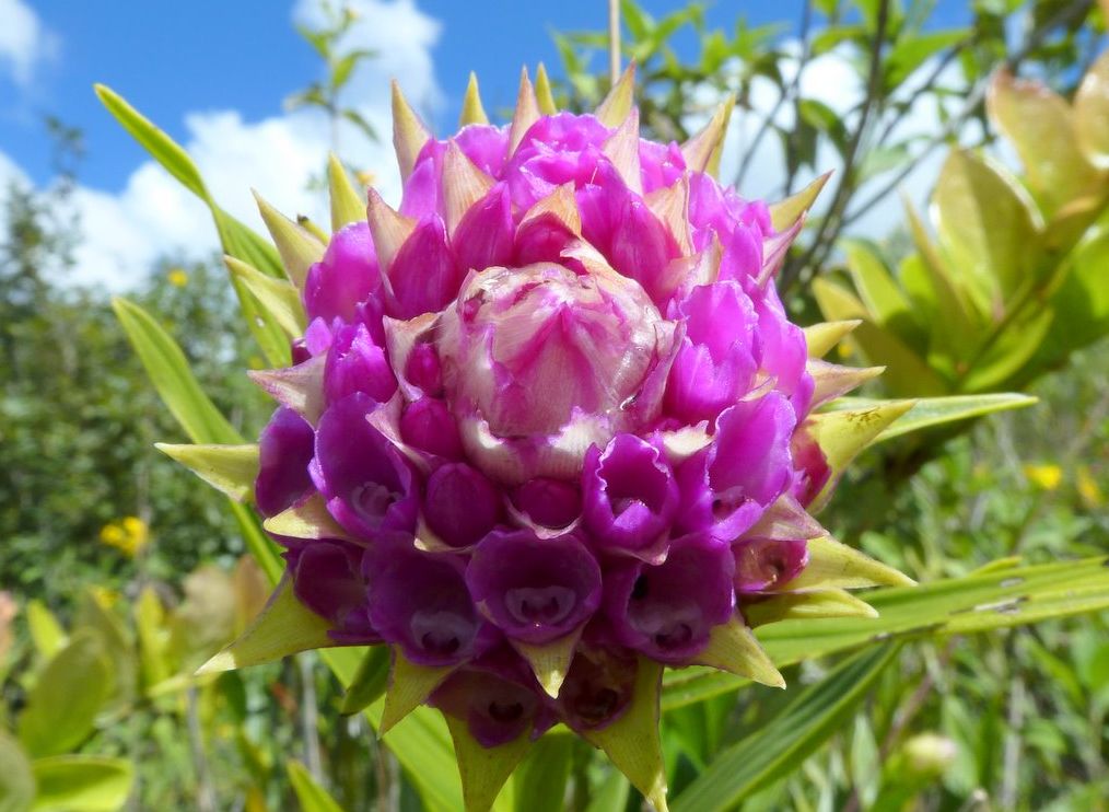 Found in Colombia and Ecuador in primary forests at elevations of 50 to 300 meters as a giant sized, hot growing terrestrial with erect canes carrying towards the apex, rather close set, leathery, plicate, erect to suberect, lanceolate, acuminate leaves that blooms in the winter on a terminal, racemose, capitate, sessile, densely many flowered inflorescence with elliptic, acute to acuminate, hyaline margined floral bracts that decrease in size towards the apex