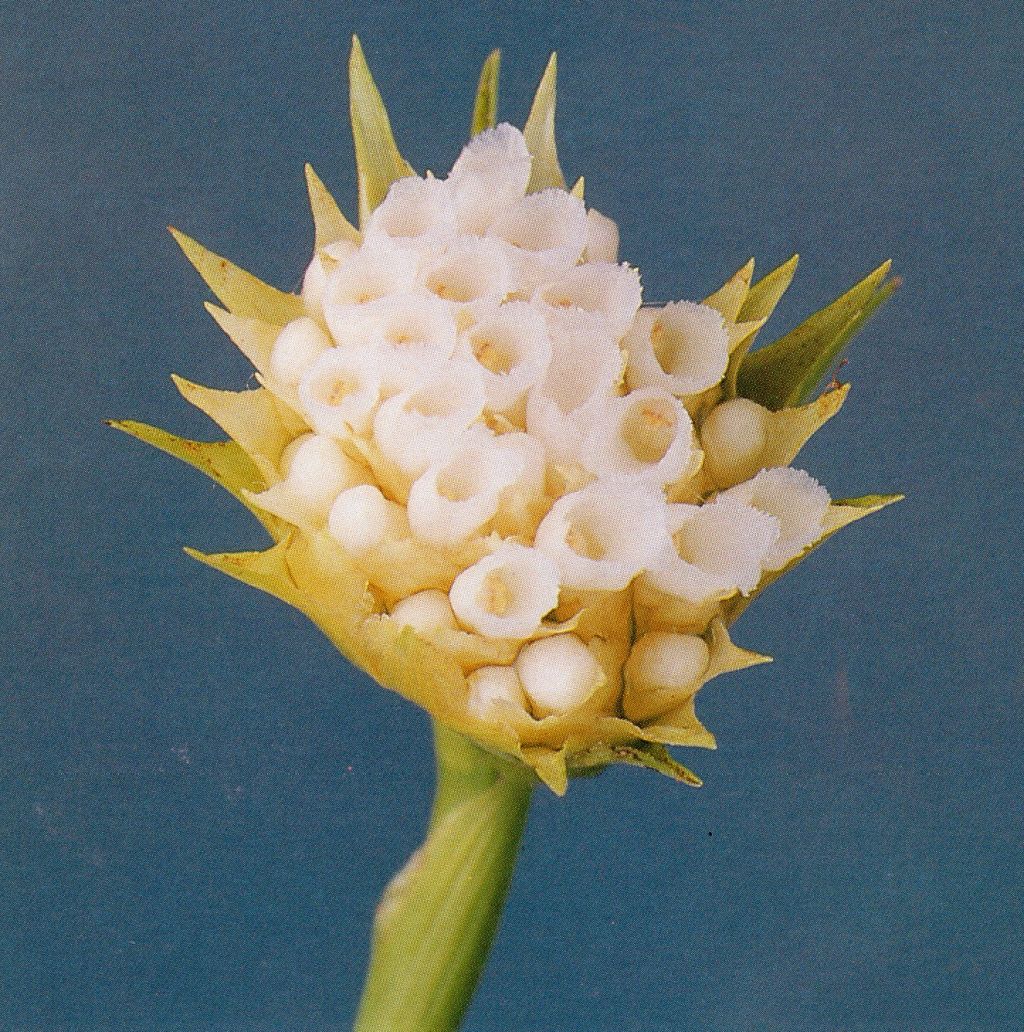 The unopened part of the inflorescence has a glutinous-mucousy film over the buds until they open as flowers