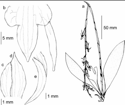 TYPE Drawing by © (Szlach., Lamczyk & Baranow and The Reaserch Gate Website Fig. 1. Ochyrella ortiziana (drawn from the holotype by M. Lamczyk & P. Bar- anow). — A : Habit. — B : Lip and spur. — C : Petal. — D : Dorsal sepal. — E : Lateral sepal.